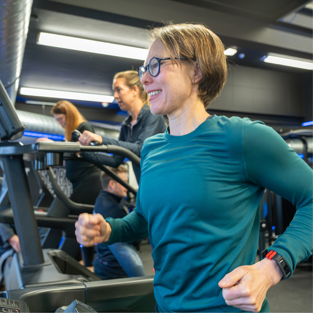 Extensive cardio zone featuring a stepmill, cross trainers, treadmills, upright & recumbent bike